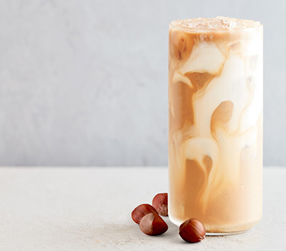Cho 120ml Sữa tươi thanh trùng Barista Milk + 40ml Coffee + 50ml Syrup Top Life Hazenut + 10 gram bột Frappe + 20ml Whipping Ken + đá cho vào cối xay