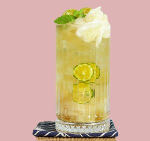 Khuấy đều, cho ly đầy đá. Sau đó rót 40ml Espresso lên.