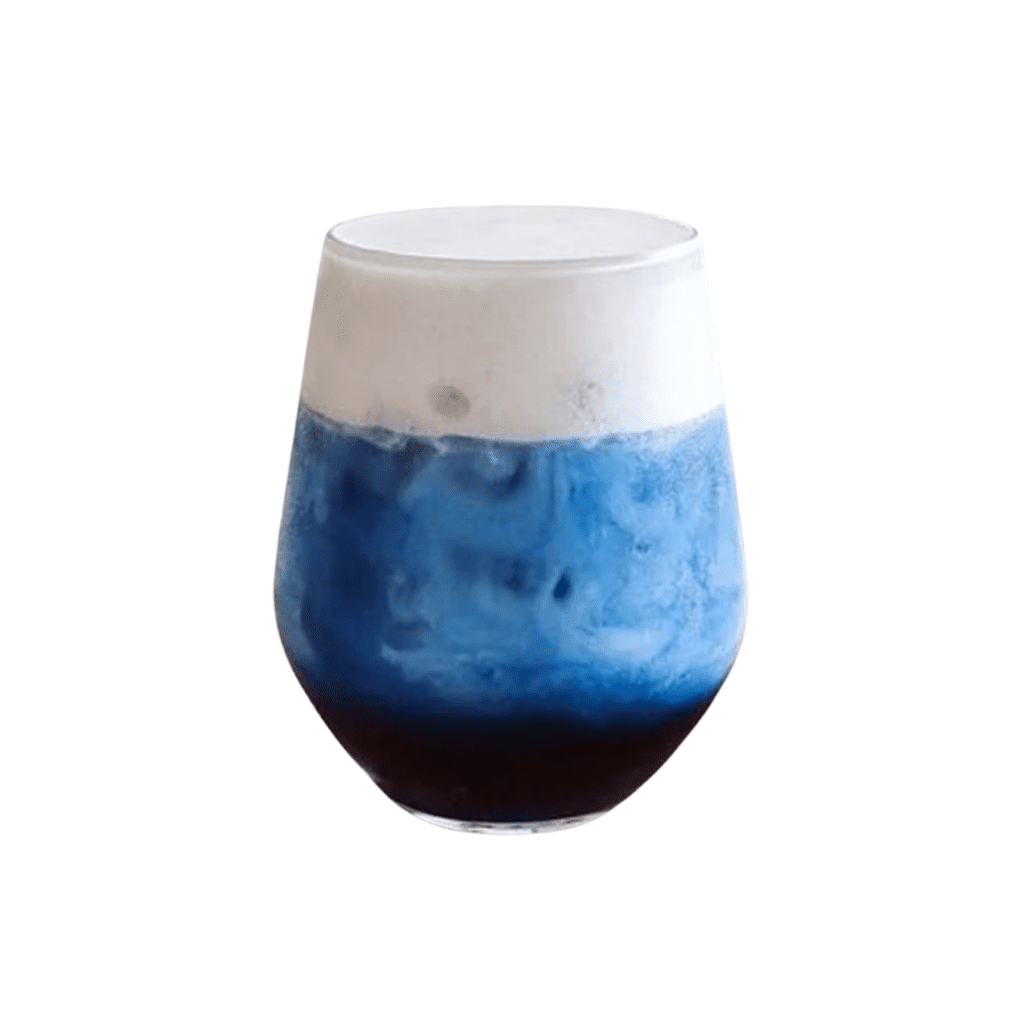 - Trà: Ủ 100gam gồm trà lài + trà hoa đậu biếc với 2 lít nước sôi ở nhiệt độ 90°C trong vòng 10 phút. Lọc bỏ xác lấy nước cho 400gam đá vào trà khuấy đến khi tan đá.