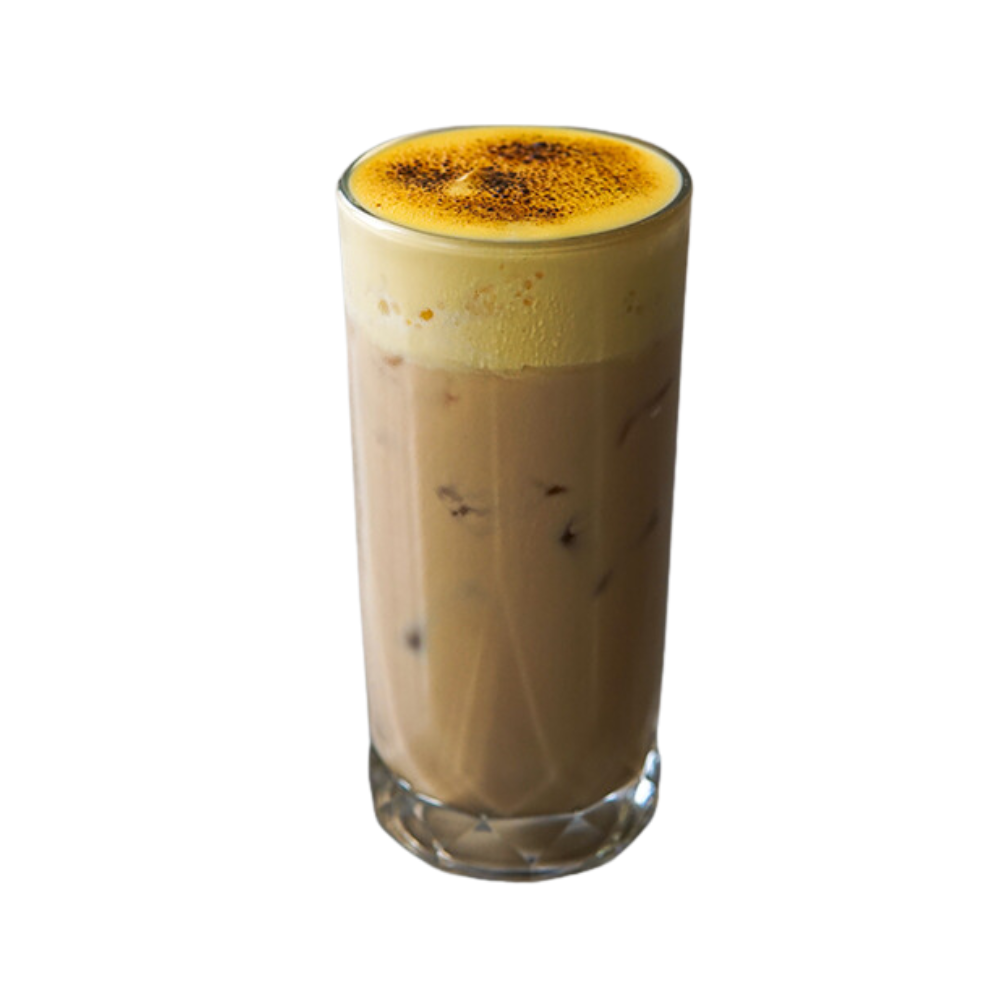 - Pha chế: Rót 150ml Trà đã mix vào shaker + 20ml Syrup đường mía + 50ml Sữa Barista + 50ml sữa đặc + 2/3 ly đá lắc đều. Cho 1 muỗng canh trân châu vào ly, đỗ hỗn hợp vừa lắc ra ly. Rót 80ml Machiato lên trên, trang trí thêm vài cánh hóa đậu biếc khô đẹp mắt hơn.